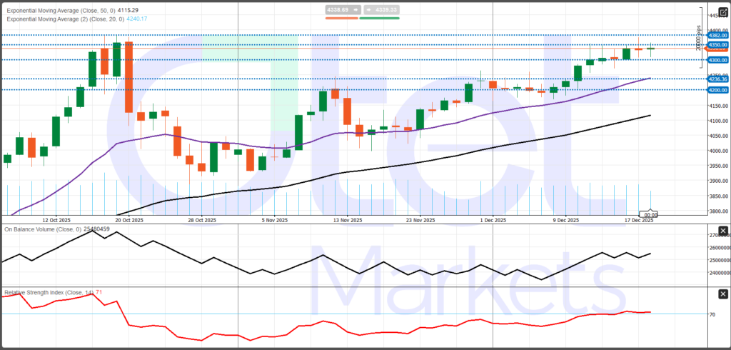از نظر تکنیکال، ۴,۳۰۰ دلار حمایت کلیدی است، در حالیکه ۴,۳۵۰–۴,۳۵۶ و ۴,۳۷۶–۴,۳۸۲ نوار مقاومت اصلی را تعریف میکنند. شکست زیر ۴,۳۰۰ ریسک حرکت به سمت ۴,۲۷۰ و احتمالاً میانه ۴,۲۰۰ها را بالا میبرد؛ شکست پایدار بالای ۴,۳۸۰ مسیر اوجهای جدید را دوباره باز میکند.