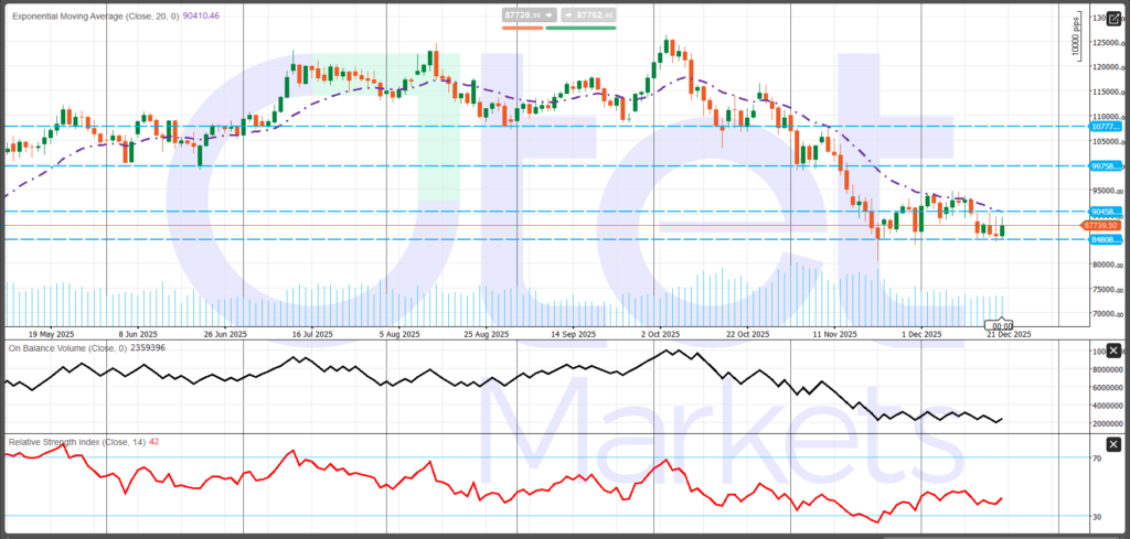 BTC آخرین هفته معاملاتی ۲۰۲۵ را نزدیک ۸۸ هزار دلار آغاز میکند، پس از ثبت دامنه روزانه حدود ۸۶.۹ هزار تا ۸۹.۲ هزار دلار. تصویر کلی بازار هنوز بیشتر «هضم پس از سقف» است تا یک روند تازه. بیت کوین همچنان بسیار پایینتر از اوج اواخر اکتبر بالای ~۱۲۶ هزار دلار قرار دارد؛ بنابراین عرضه قابلتوجهی در بالا باقی است و تا زمانی که بازار تلاش میکند یک کف پایدارتر بسازد، جهشها در برابر فشار فروش آسیبپذیرند.